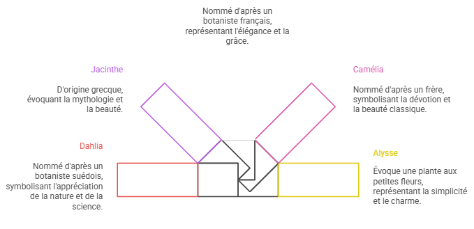 Voici quelques prénoms floraux classiques et leur signification :