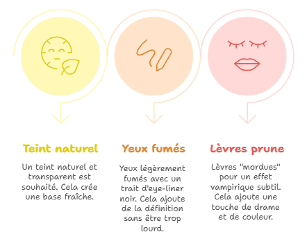 Votre carnation joue également un rôle important dans l’adaptation de ce look. Sur les peaux claires, l’effet gothique sera naturellement plus prononcé, tandis que sur les peaux plus foncées, le contraste créera un résultat plus subtil mais tout aussi élégant. Dans tous les cas, le **respect de votre teinte naturelle** est essentiel pour un rendu harmonieux.