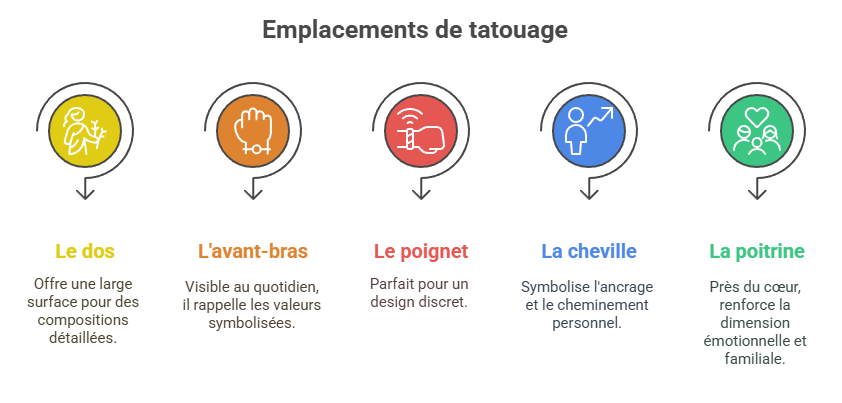 Les emplacements les plus courants pour le tatouage arbre de vie incluent :