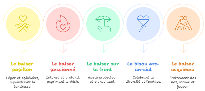 Le langage des baisers est riche et nuancé, chaque type véhiculant un message particulier. Voici quelques expressions significatives du baiser dans notre culture :