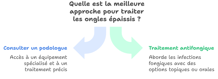 Dans certains cas plus sévères, notamment lorsque l’épaississement provoque des douleurs importantes ou des complications, l’ablation partielle de l’ongle peut être envisagée. Cette intervention mineure est réalisée sous anesthésie locale et permet à un nouvel ongle de repousser dans de meilleures conditions.