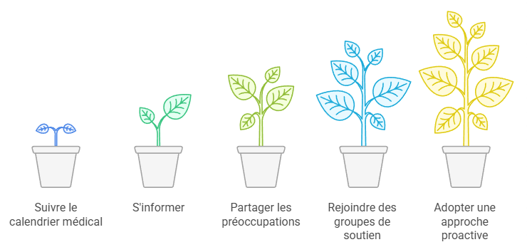 La gestion du stress psychologique lié au diagnostic ne doit pas être négligée. L’anxiété et l’incertitude peuvent affecter significativement votre bien-être global. Des techniques de relaxation, la méditation, le yoga ou le soutien psychologique professionnel peuvent vous aider à gérer ces émotions difficiles.